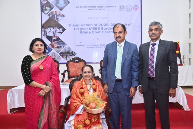 The Oxford Medical College, Hospital & Research Centre ushered in the new academic session with a vibrant Orientation and Freshers’ Day on October 27, 2025. The event marked a milestone as the institution opened its doors to the 2025-26 MBBS batch—young minds filled with dreams of service, science, and compassion.